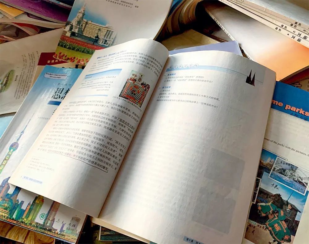 在中部某省一再生资源公司的车间内,一座近两层楼高、如沙丘状的“教材山”异常醒目,几乎涵盖了中小学所有科目的教材,随手捡起一本初中历史教材,品相完好、干净整洁